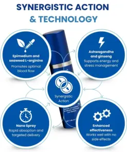 These ingredients aren’t randomly combined. Epimedium and seaweed L-arginine work together to promote blood flow; Ashwagandha and ginseng jointly support energy and stress management. Combined with sublingual nano-spray technology, they’re more effective than any ingredient used alone.
