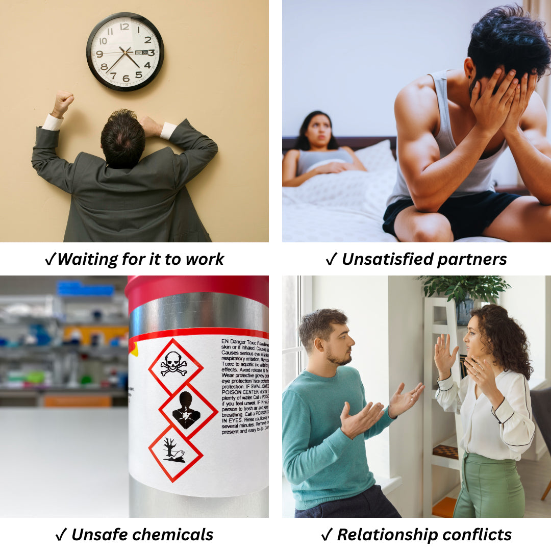 No pill side effects, no awkward pill-taking process. This means you can enjoy confident intimacy without headaches or discomfort the next day.