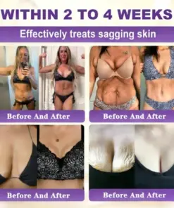 With regular use. 95% of users noticed a visible lift and reduction in sagging around the chest and buttocks. It also helps tighten loose skin after weight loss or childbirth and fades fine lines on the face and neck. revealing a firmer. younger-looking appearance.