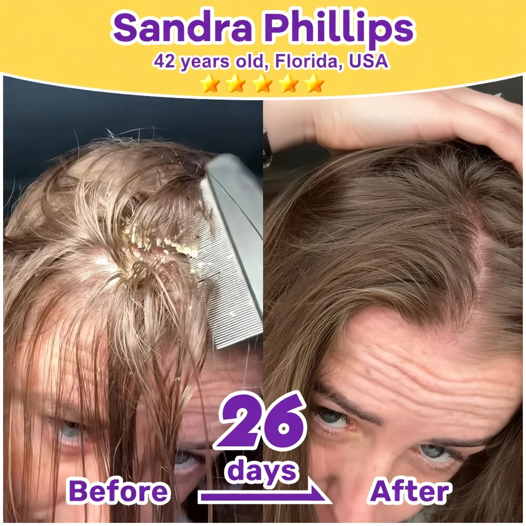 I gently massaged it into my scalp. and within days the burning and itching began to fade. After a few weeks. the flakes softened and lifted away. leaving my scalp calm. hydrated. and clean. The inflammation disappeared. the dryness was gone. and my scalp finally felt balanced and healthy again — I never imagined something so gentle could be this powerful.”—Sandra Phillios