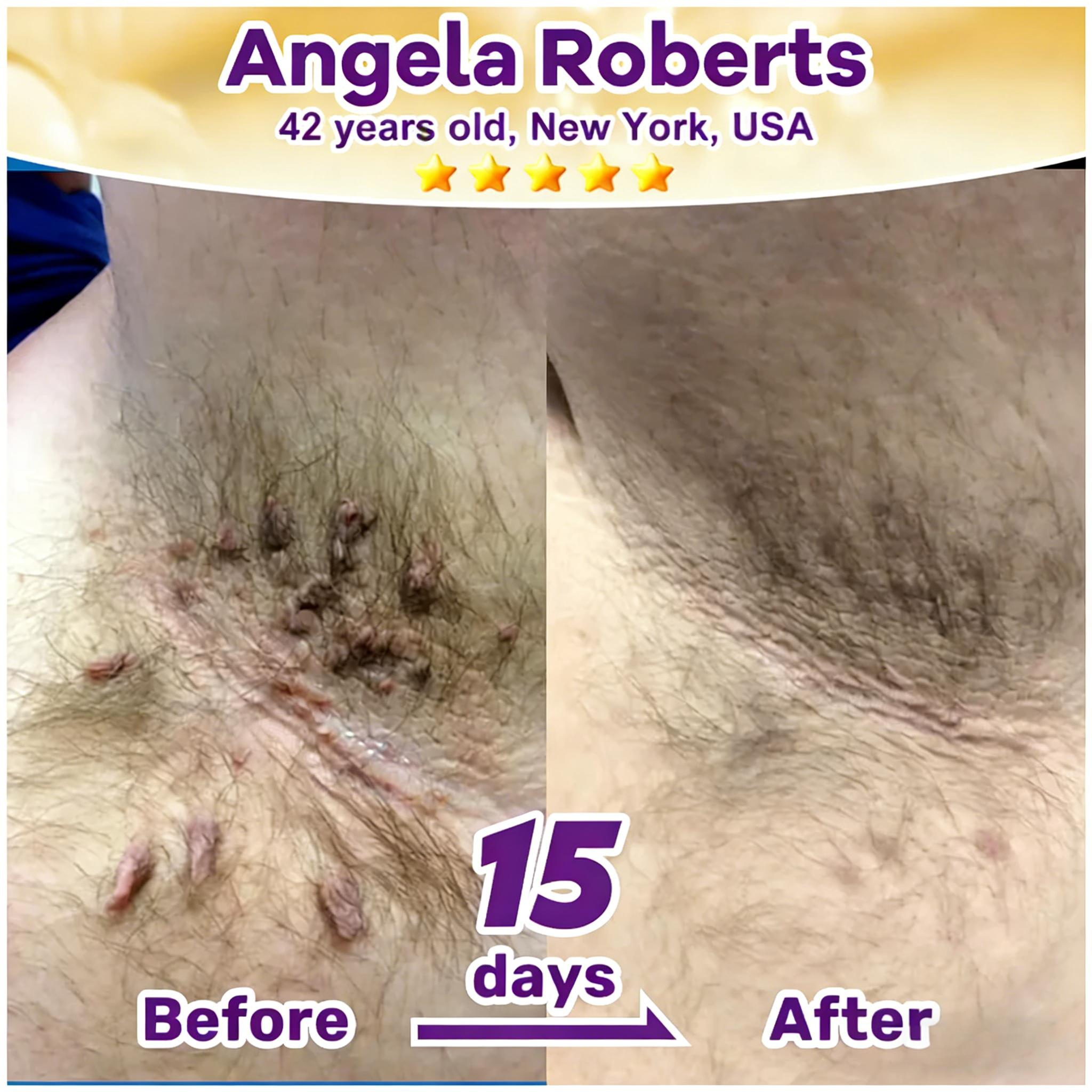 What really surprised me was that a little bump on my neck I’d had for years reacted the same way — it dried up. fell off. and healed cleanly with no scars. My underarms and neck are now soft. even-toned. and finally comfortable again.