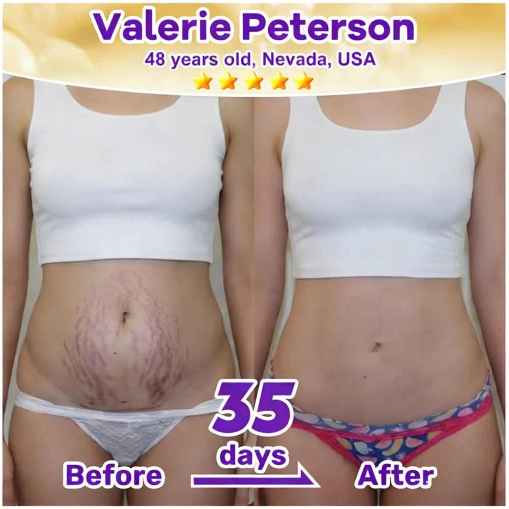 “During my pregnancy. stretch marks slowly appeared across my belly — gentle reminders of the life growing inside me. After my C-section. the scar left behind made me feel self-conscious. and I thought my skin would never fully recover. Then I started using BQYOOM® Biotin 10-in-1 Skin Restoration Cream. and from the first use. my skin felt soothed. nourished. and hydrated. After about a month. the stretch marks faded. the redness softened. and even my C-section scar looked smoother and lighter. It’s like my body finally remembered how to heal — I truly recommend it to every new mom.”—Valerie Peterson