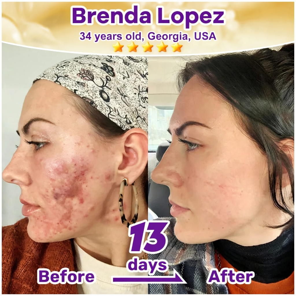 Within just 13 days. the redness and irritation were gone. and after two weeks. I hadn’t seen a single new breakout. I used to wake up with 8 to 10 new pimples every morning. but now? Not one. For the first time in decades. I can walk out of the house without makeup and no longer hide behind filters on video calls. My skin is so smooth that my husband jokes it’s like touching a peach — and honestly. I’ll take that compliment.