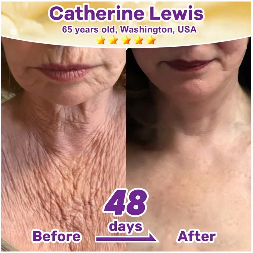 From the very first use. my skin felt nourished and deeply hydrated. With continued application. it regained elasticity. the wrinkles softened. and the dullness faded. What once looked aged and fragile now appears firm. smooth. and radiant — like the skin I thought I had lost forever. It didn’t just improve my skin; it made me feel as though time had finally been gentle again.”— Catherine Lewis