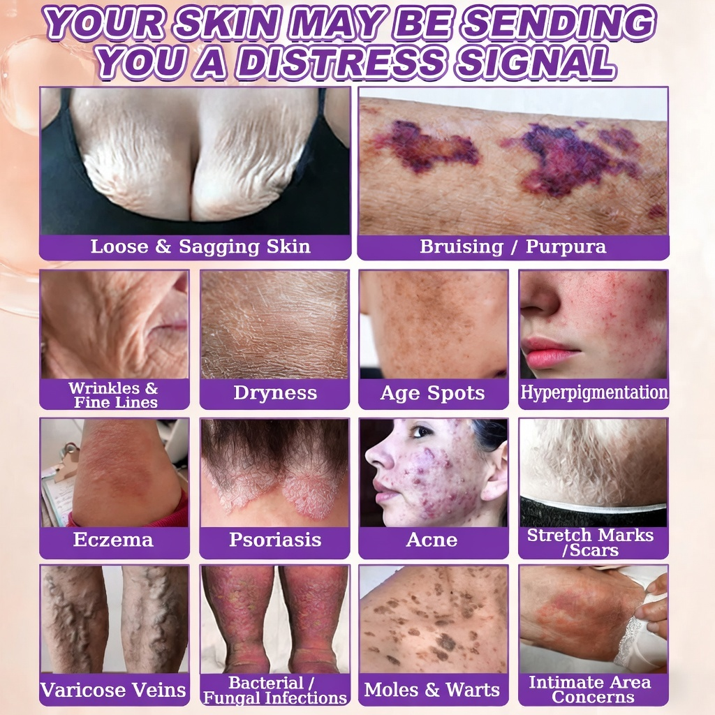From birth to old age. our skin faces different changes and challenges at every stage of life: scars and acne inflammation. breast sagging and loss of firmness. purpura and pigmentation. dryness and sensitivity. the growth of moles. warts. and skin tags. inflammatory conditions such as psoriasis and eczema. fungal and bacterial infections. and even intimate-area irritation and itching. These concerns persist throughout a lifetime — yet for decades. there has been no truly comprehensive. safe. and effective solution.