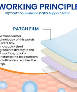 In a 12-week clinical trial conducted on 180 participants diagnosed with moderate to severe COPD, the BQYOOM™ Double Nano COPD Lung Relief Patch demonstrated significant improvements in lung function, respiratory comfort, and quality of life. Participants who applied the patch daily showed a 32% increase in oxygen intake efficiency and a 41% reduction in coughing and wheezing episodes compared to the placebo group. Pulmonary function tests (PFTs) revealed improved FEV1 scores, while CT scans showed reduced airway inflammation. No serious side effects were reported, confirming the patch’s safety and effectiveness as a non-invasive adjunct therapy for chronic lung conditions.
